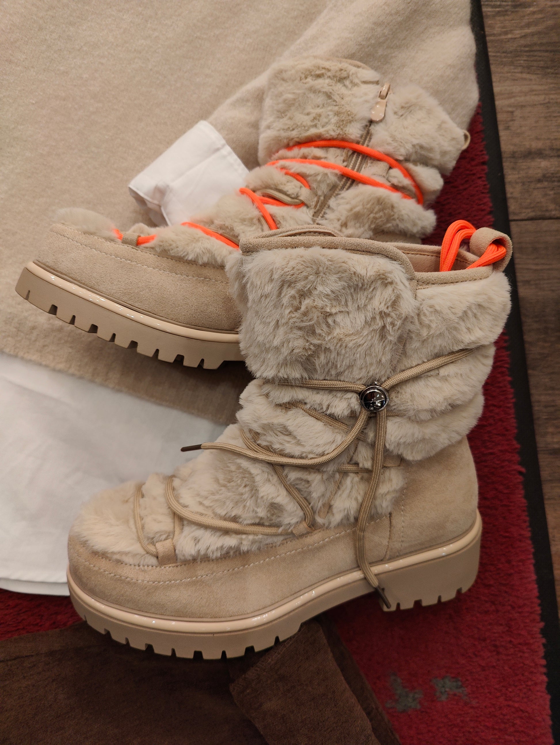 Von Innen ist der Boots gefüttert und hält schön warm. Er fällt Größenentschrechend aus.