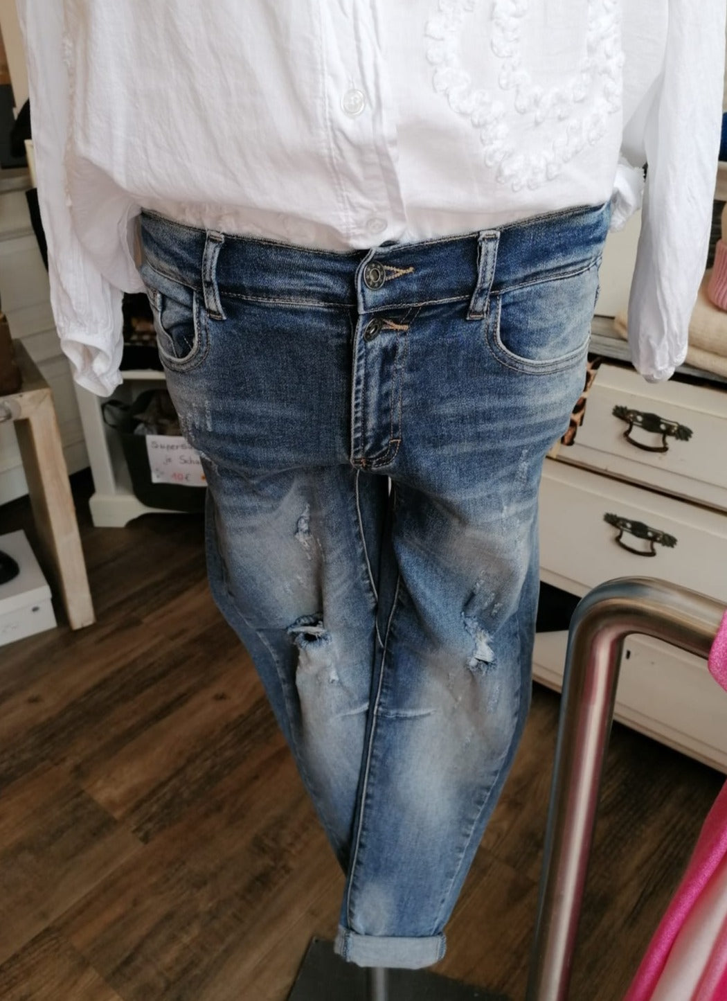 Tolle bequeme Hose. Vorne mit 2 Knöpfen und im Rücken ist ein Gummizug der für Bequemlichkeit sorgt.