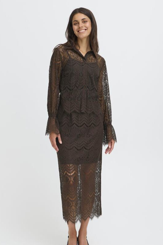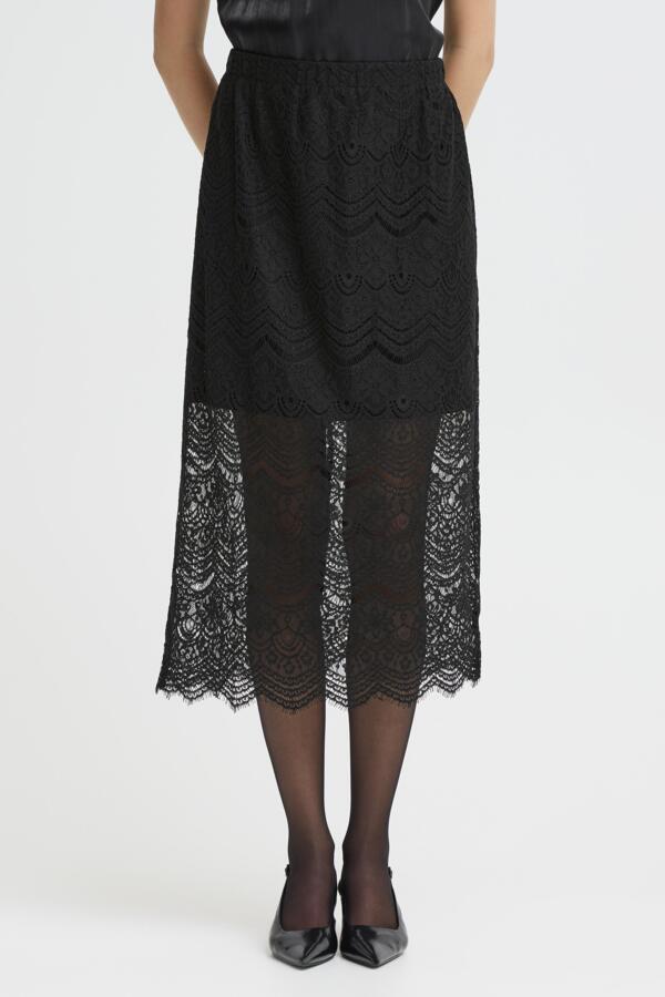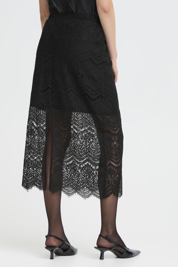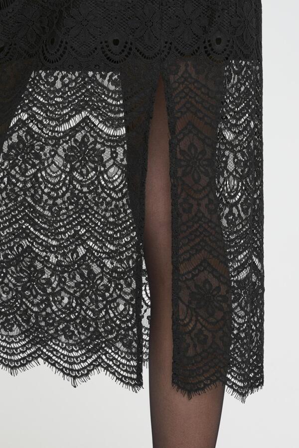 Dieser Spitzen-Midirock bietet eine gerade Passform und eine elegante, gewellte Saumkante, ideal für vielseitige Styles und angenehmen Komfort.